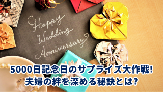 Uncategorized 5000日記念日のサプライズ大作戦!夫婦の絆を深める秘訣とは? 結婚5000日記念日のサプライズについて、意味や由来、予算、妻の反応、成功のコツ、プレゼントアイデア、注意点を詳しく解説。夫婦の絆を深める機会としての記念日の重要性を強調し、心のこもったサプライズの計画方法を提案。 2024.06.23 Uncategorized